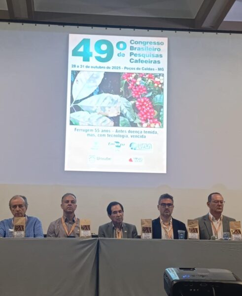 Termina nesta sexta-feira, 31 a 49ª edição do Congresso Brasileiro de Pesquisas Cafeeiras, que celebra os 55 anos de controle da ferrugem do cafeeiro. O evento acontece no Palace Casino, e reúne técnicos, pesquisadores e produtores de diversas regiões do país para discutir inovações e avanços tecnológicos no setor cafeeiro.