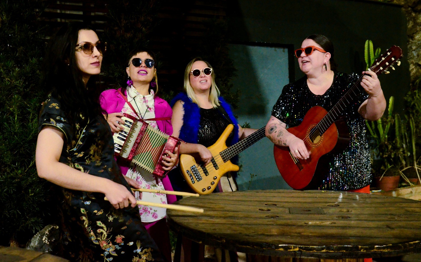Agora, Daiana Onofre assume o baixo elétrico, antes acústico, e Gabi Abreu incorpora a bateria, ampliando as camadas sonoras do espetáculo. Ao lado delas, seguem Fernanda Dearo e Nathália Diniz. A fotografia — sempre central no projeto — ganha nova série com ensaios realizados em locações de Poços de Caldas. A artista Dani Alvisi assina também essa nova identidade, em que as imagens dialogam com a música de forma orgânica e provocadora.