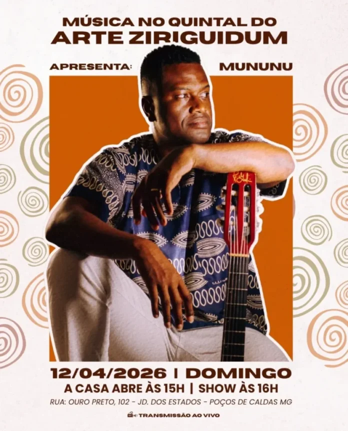 A proposta “Música no Quintal no Arte Ziriguidum” que mantém o compromisso de valorizar a música autoral de Poços de Caldas, ampliando a visibilidade dos artistas locais e incentivando a formação de público, chega à sua 4ª edição com data marcada. O primeiro encontro contará com a participação do artista poços-caldense Mununu, neste domingo, dia 12 de abril, a partir das 15h, no espaço Arte Ziriguidum, com entrada gratuita.